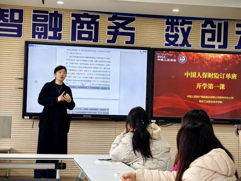 3月30日,數字商務學院金融服務與管理專業“中國人保財險訂單班”迎來了開班第一課。人保財險常州市武進支公司團隊經理、訂單班導師陳麗走進校園,為訂單班同學帶來了一場內容豐富、案例生動的專題講座。此次課程開班標志著訂單班人才培養工作全面啟動,校企協同育人邁入實質性階段。