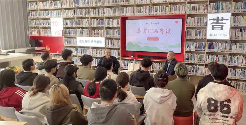 本次活動以“以書為友,共話成長”為主題,旨在搭建師生深度交流的閱讀平臺,引導(dǎo)廣大學(xué)生養(yǎng)成良好的閱讀習(xí)慣。王士恒教授分享了路遙的長篇小說《平凡的世界》,以羅曼·羅蘭“世界上只有一種真正的英雄主義,那就是在認(rèn)清生活的真相后依然熱愛生活”為引言,深入剖析了這部現(xiàn)實主義巨著的精神內(nèi)核。王教授通過孫少安、孫少平兄弟的奮斗歷程,闡釋了“平凡”與“偉大”的辯證關(guān)系,引導(dǎo)同學(xué)們在平凡生活中尋找幸福。隨后,張帥老師分享了諾貝爾文學(xué)獎得主莫言的文學(xué)創(chuàng)作與代表作品。張老師以“莫言其人、莫言其獎、莫言其作”為主線,系統(tǒng)介紹了莫言成為首位中國籍諾貝爾文學(xué)獎獲得者的文學(xué)歷程。他重點分享了莫言的多部代表作品,包括《三十年前的一次長跑比賽》《生死疲勞》等,引導(dǎo)同學(xué)們感受莫言作品中荒誕與現(xiàn)實交織的獨特魅力,以及對中國鄉(xiāng)土社會的深刻洞察。