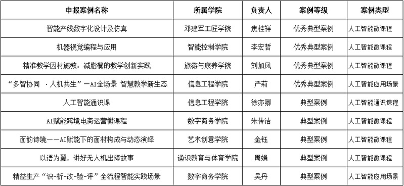 這些獲獎案例覆蓋了旅游康養、智能控制、跨境電商、通識教育、信息工程等多個學院和專業領域,體現了我校推動人工智能與各專業以及相關課程深度融合、構建“人工智能+”教育教學新生態的廣泛探索。