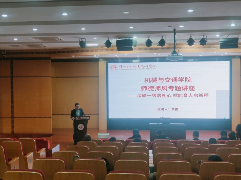 唐一鑫作總結講話。他表示,黃俊同志的講座既有一線實踐的溫度,又有育人賦能的深度。他要求全體教職工以黃俊同志為榜樣,深入學習踐行勞模精神、工匠精神,堅守為黨育人、為國育才初心,把師德師風建設融入教育教學、科研創新、社會服務全過程;立足機械與交通學院專業特色,不斷提升自身專業素養和育人能力,努力成為政治堅定、師德高尚、業務精湛、富有匠心的新時代高職教師,為學院高質量發展、培養更多高素質技術技能人才貢獻力量。(審核:唐一鑫、李穎、楊曌)